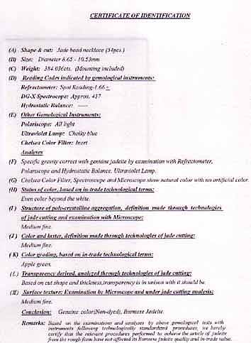Lustre (2) For explanation As with all the photo's on the certificate's this is only for identification and you must not judge the colour by this.